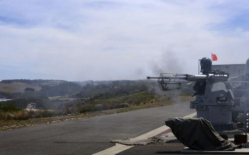 接下来,让我们一起来感受一下射击的过程。视频中,操作手们严谨地操作着舰炮,精确地瞄准目标。随着一声令下,炮口瞬间喷出火焰,炮弹呼啸着飞向目标。那一刹那,仿佛时间都凝固了,只听见炮弹击中目标时发出的巨大声响。